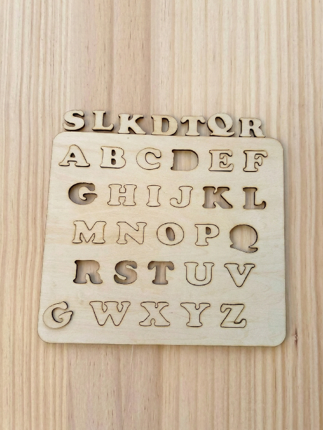 Fabricado en madera natural de alta calidad, este puzle permite a los niños explorar la forma de cada letra mediante el tacto y la vista, facilitando el reconocimiento del alfabeto y el desarrollo de la memoria visual. Su diseño minimalista y orgánico sigue los principios Montessori, eliminando distracciones y centrando la atención en el aprendizaje y la manipulación de las piezas.